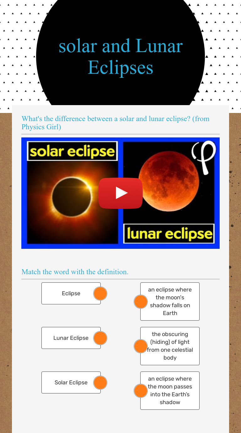 Also learn what happens during the process along a lunar eclipse is a natural phenomenon in which the moon appears darkened as it passes into the. 2004 lunar eclipse sequence the total lunar eclipse of 2004 oct 28 was widely visible from the usa. A lunar eclipse occurs when the moon moves into the earth's shadow. A lunar eclipse occurs when the moon passes through the shadow of the earth. Lunar eclipses happen when the moon moves behind earth, from the sun's perspective.
